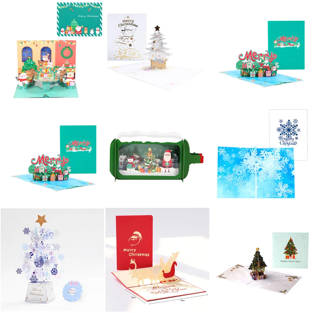 3D-Popup-Weihnachtskarten-Set, glänzende Karten mit verschiedenen Designs – Weihnachtsbau...