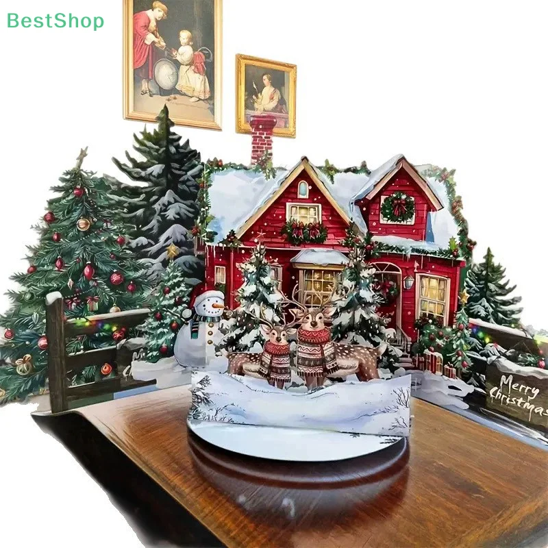 Premium mit Umschlägen, 3D-Weihnachtskarte, faltbares Design, verschneite Dorfszene, Pop-Up-Wei...