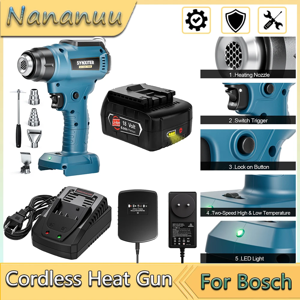Nananuu Handheld Heißluftpistole Temperatur Cordless Für Bosch 18V Batterie Elektrische H...