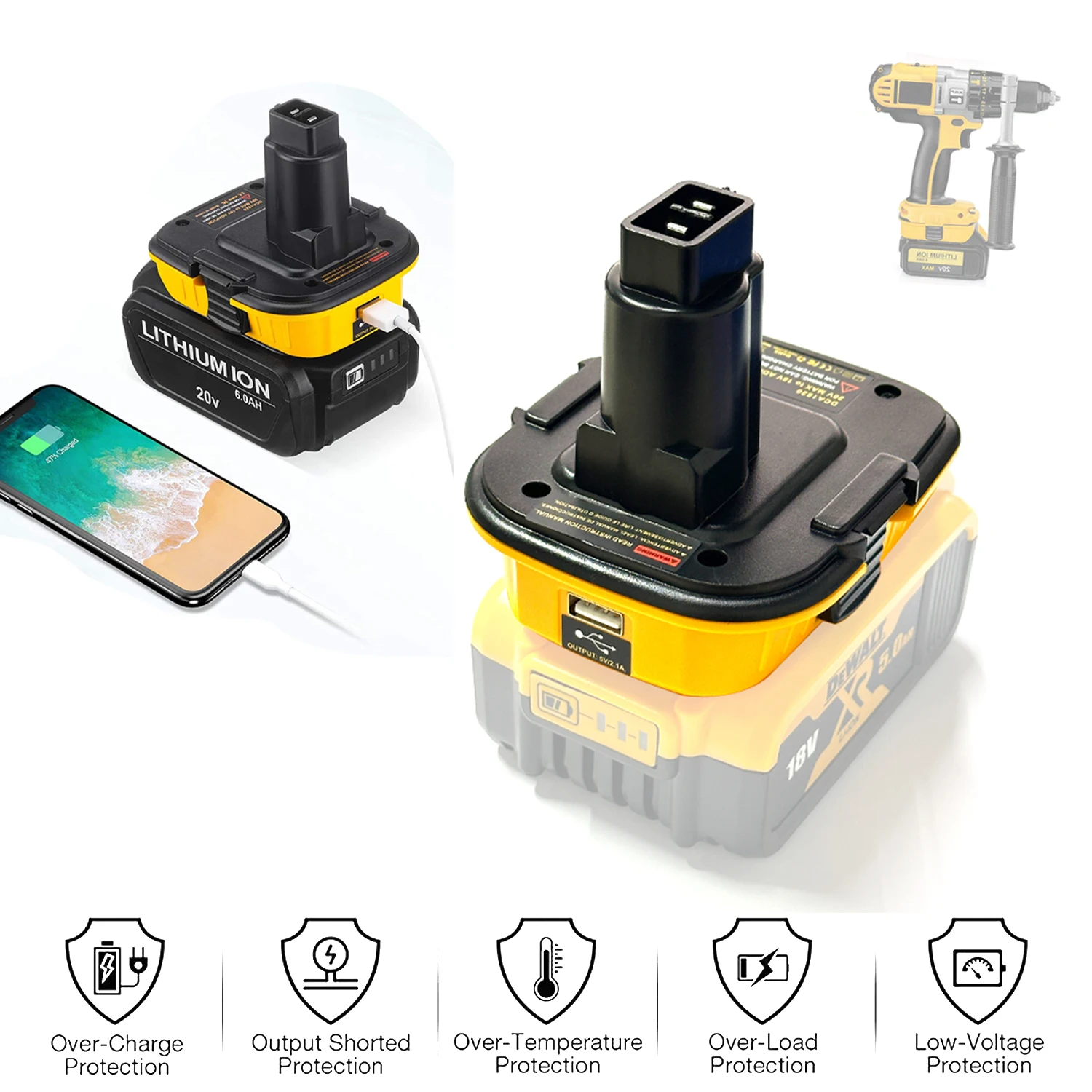 DCA1820 Batterieadapter Ersatz für DEWALT 18V auf 20V Adapter ...