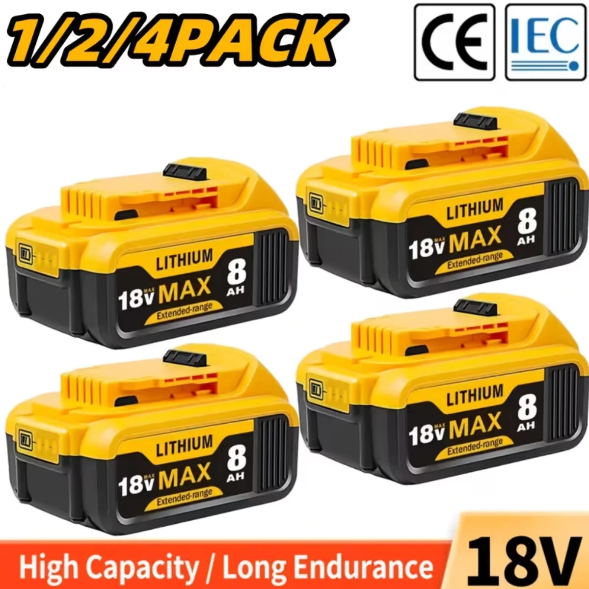 1/2/4 Pack 8.0Ah 18V Replacement for Dewalt 18V Max Battery 8000mAh for Dewalt 18Volt XR Lithium-ion...