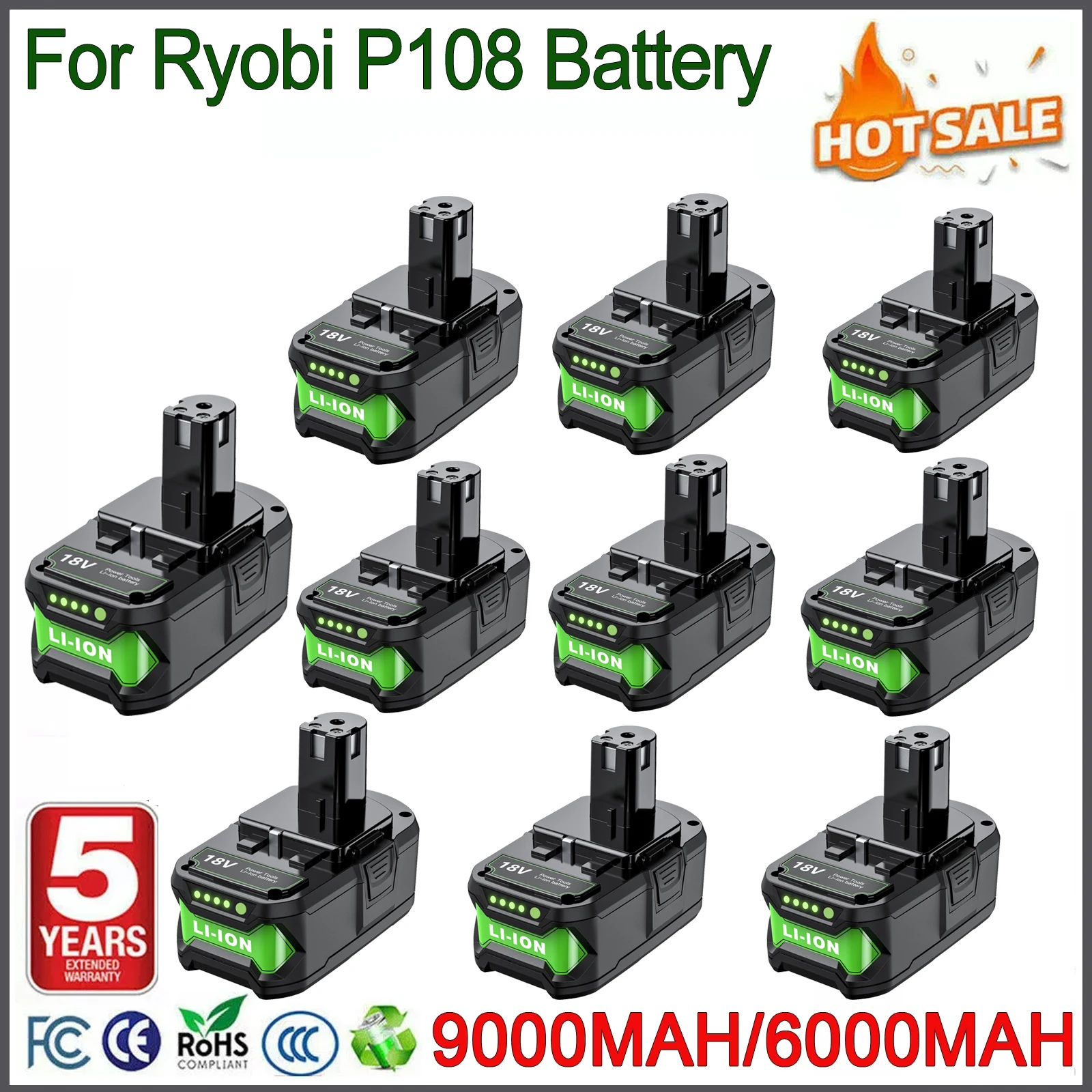 6ah / 9ah Ersatzakku für Ryobi 18V Akku-Schrauber P107 P108 P109, wiederaufladbarer Akku fü...