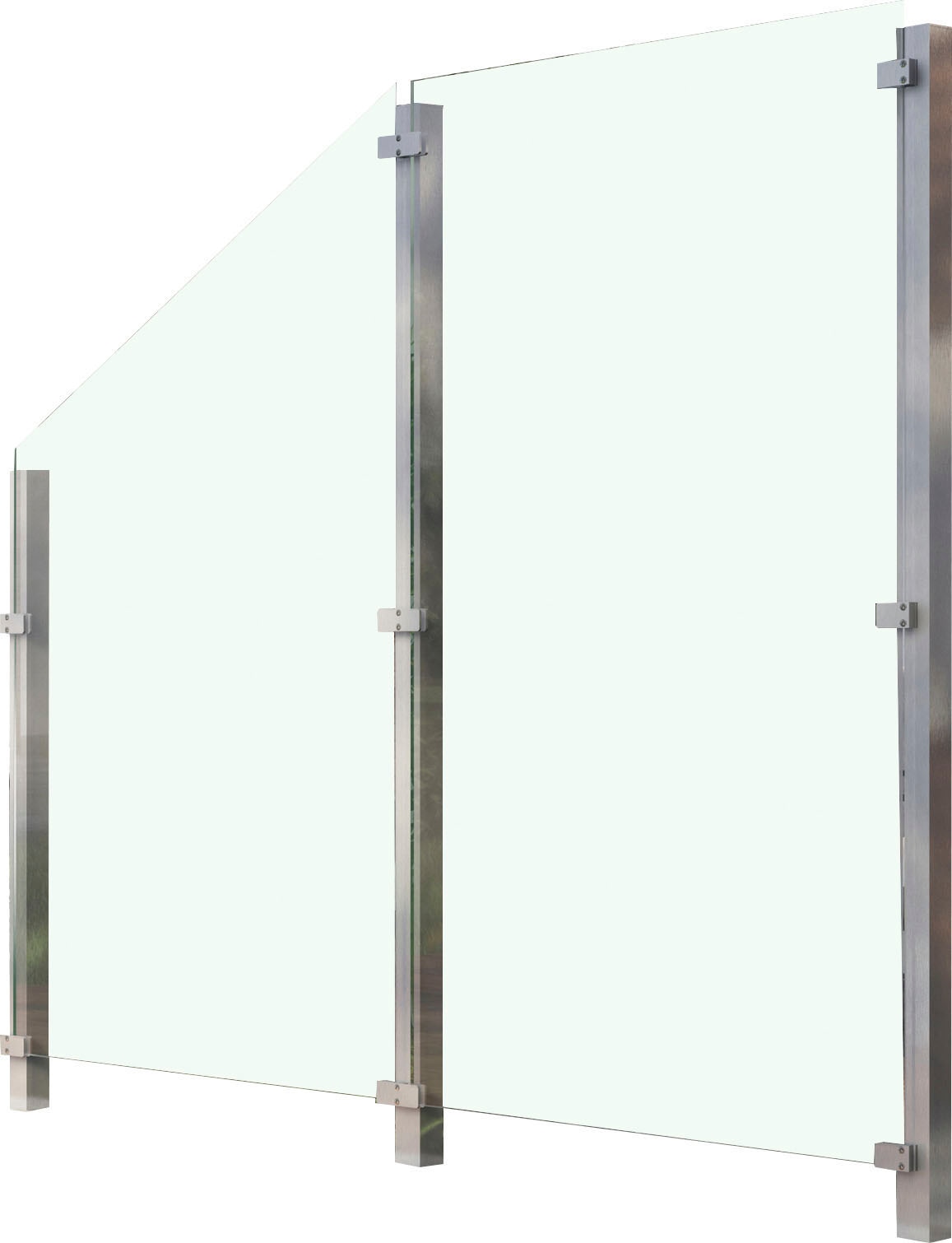 Glaszaun als Sicht- und Windschutz mit zwei Gläsern mit seitlicher Abschrägung, Farbe Klar...