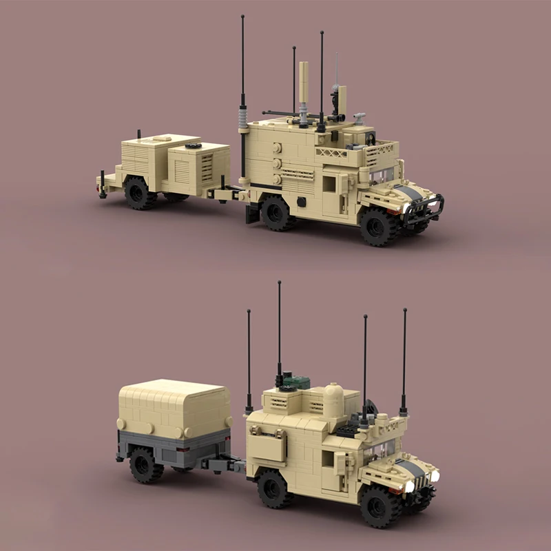 MOC Militär US Army Luftverteidigung Transport Fahrzeug Hummer und Generator Anhänger Lkw ...