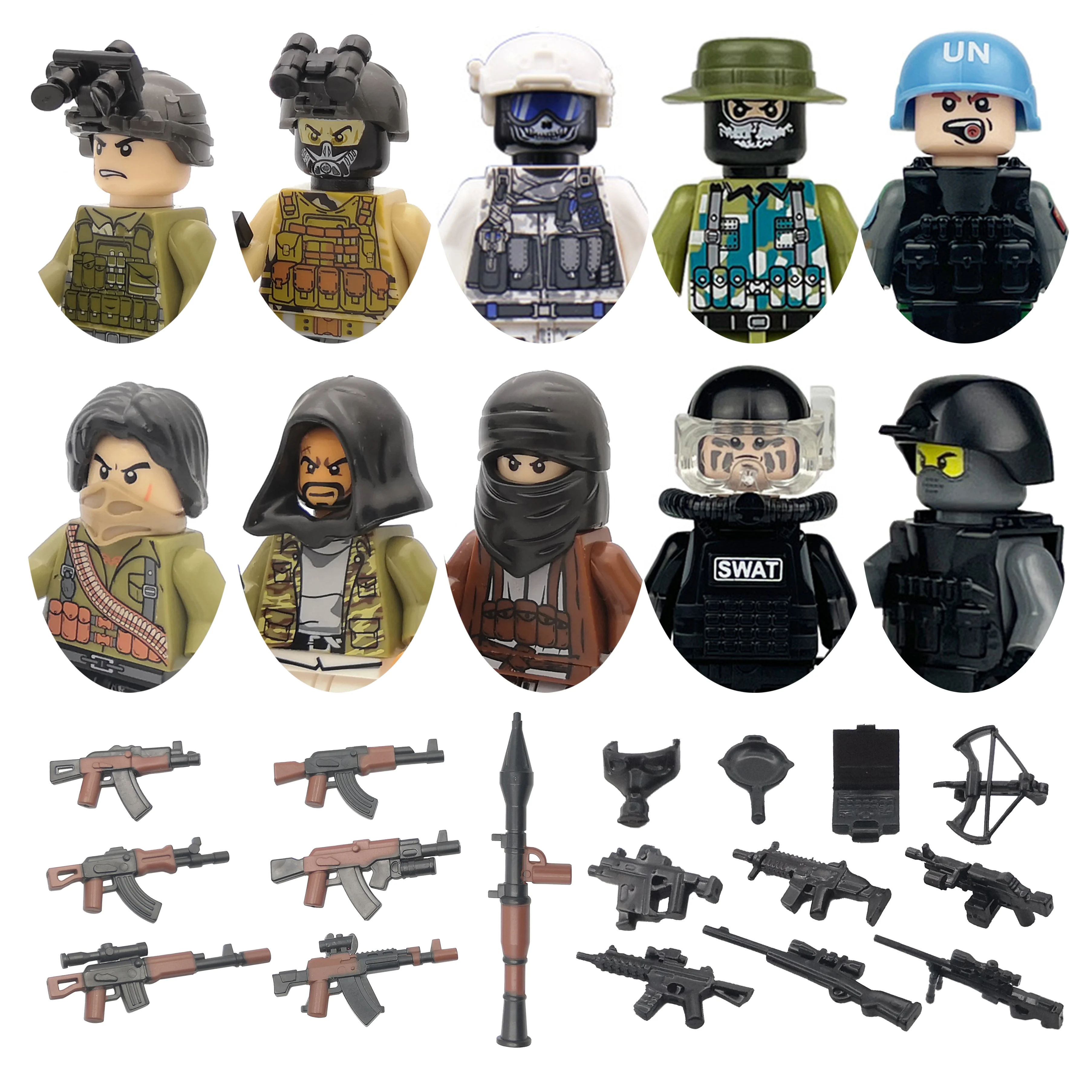 Militär SWAT Marines UN Polizei Moderne Kriegsführung Soldat Waffe Pistole Armee Figuren P...