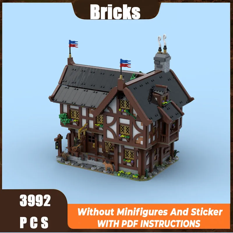 Moc Bausteine Architektur Modell Medieval Hotel Modulare Bausteine Geschenk kinder Spielzeug DIY Mon...