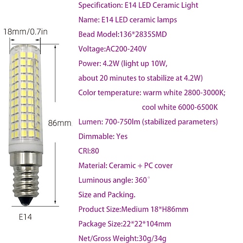 Glühlampen Sockel:G9,E12,E11,BA15D,E14; LED Perlen Menge:136; Anfangslumen:700; Farbtemperatur:...