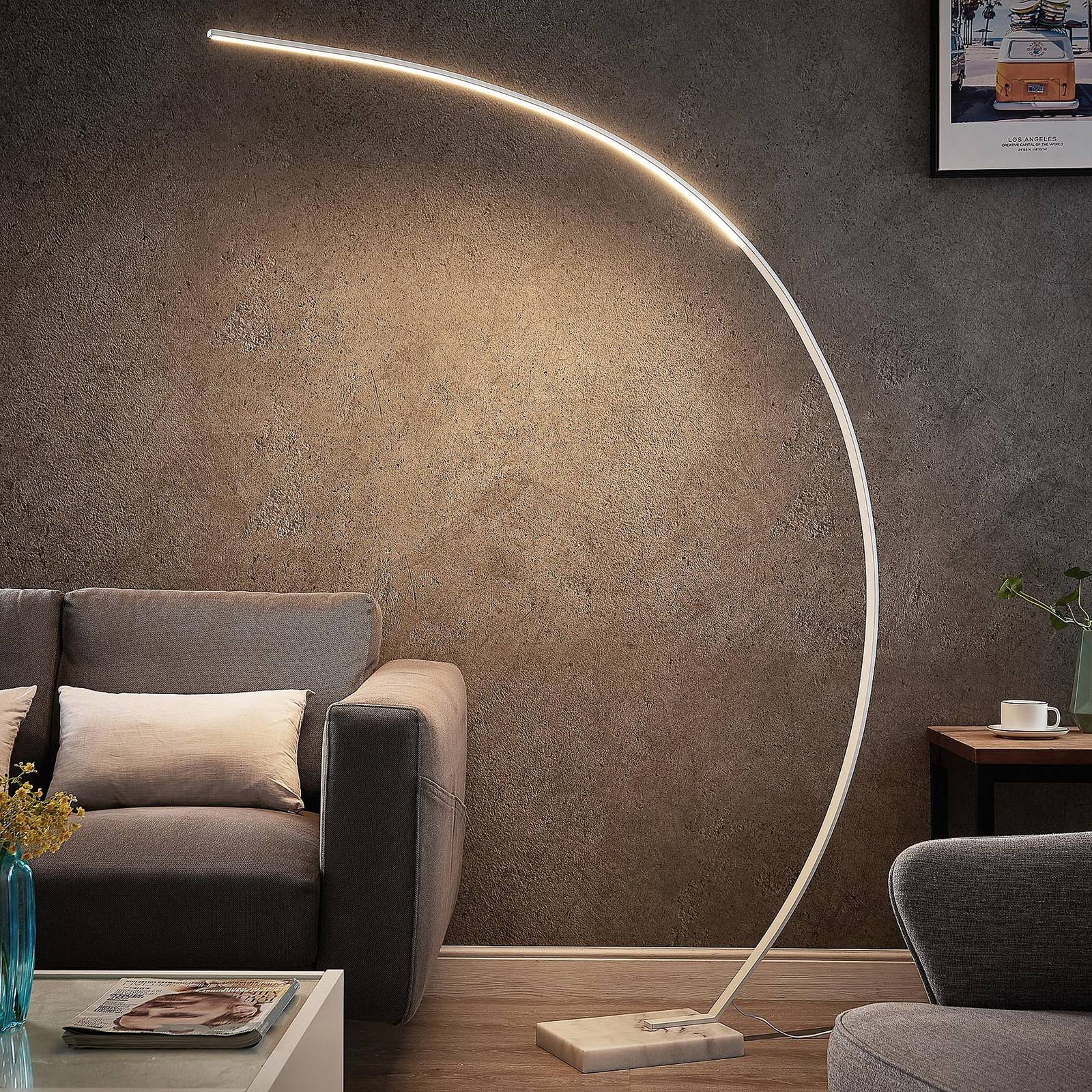 Mit der LED-Bogenstehleuchte Boga von Lucande kann man ein einzigartiges Lichterlebnis in den eigene...