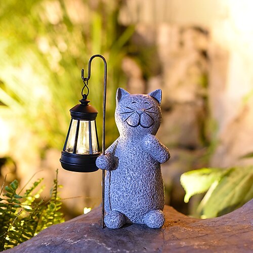 Solar-Gartenstatue Katze mit Leuchtender Solarlaterne –solarl...