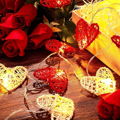 Valentinstagsherz Lichterkette Vintage Rattan Herzform Lichterkette...