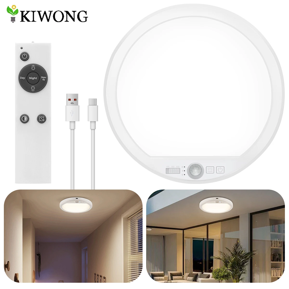 Wiederaufladbare Deckenleuchte, 5000 mAh, batteriebetrieben, kabellose Bewegungsmelder-Deckenleuchte...