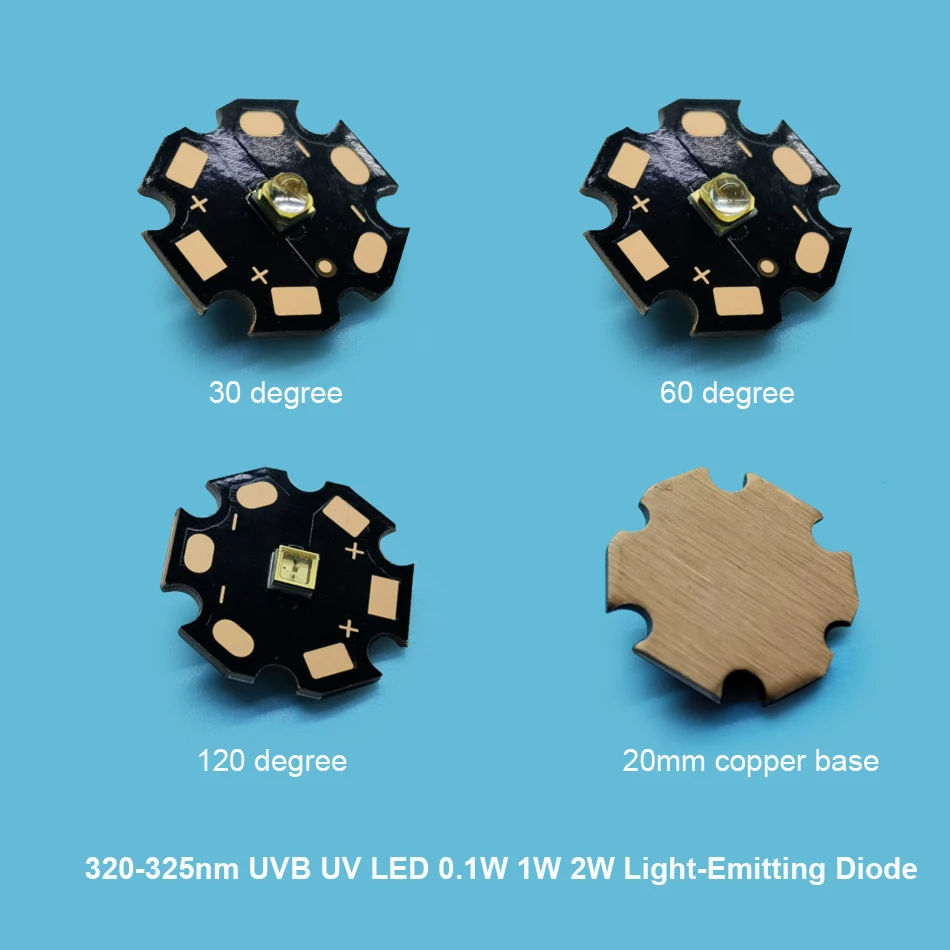 325 nm UVB-UV-LED-Perlen 320–330 nm ultraviolette Leuchtdiode 0,1 W 1 W 2 W mit 20 mm Kupfersu...