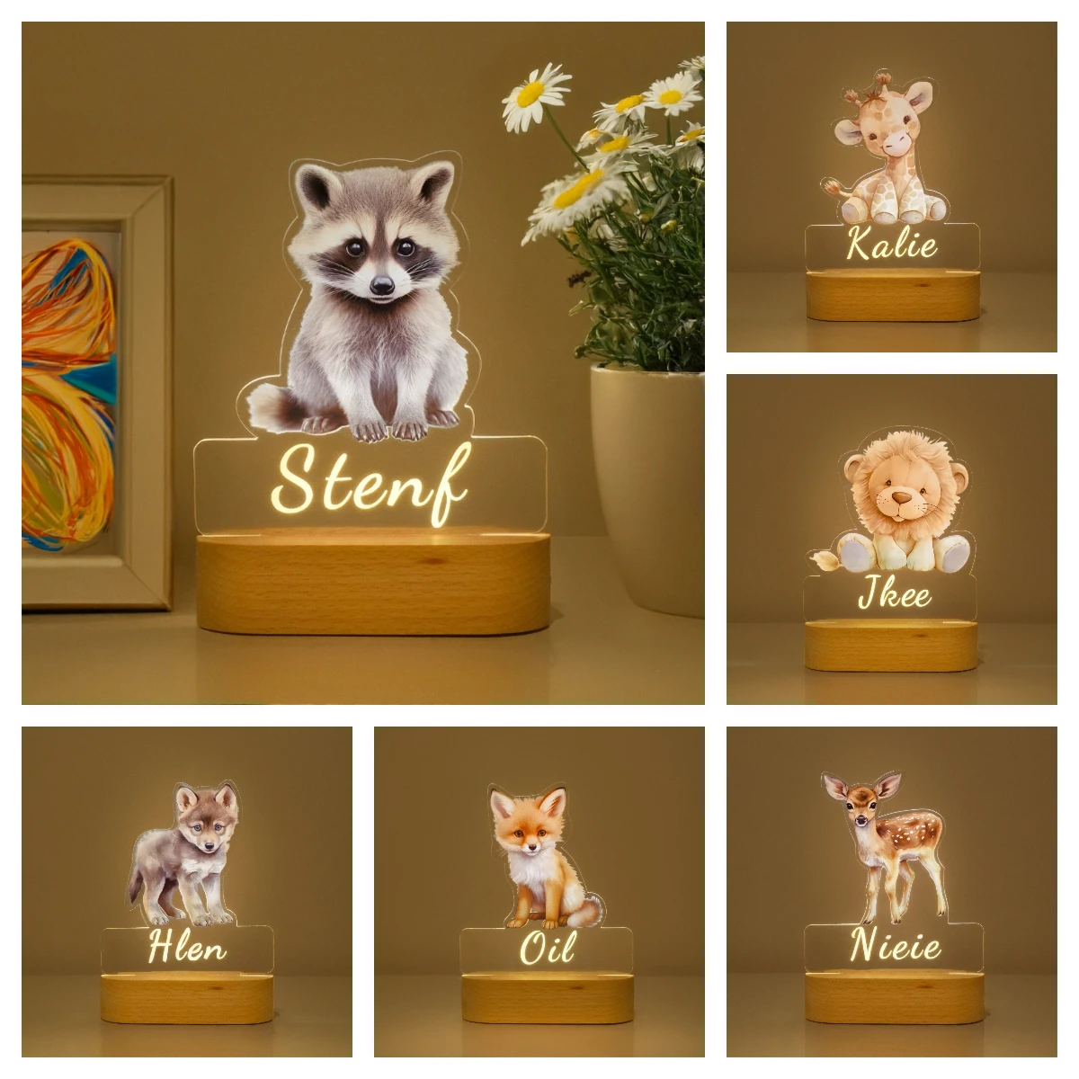 Benutzerdefinierte USB personalisierte Kinder Tier Nachtlicht Acryl...