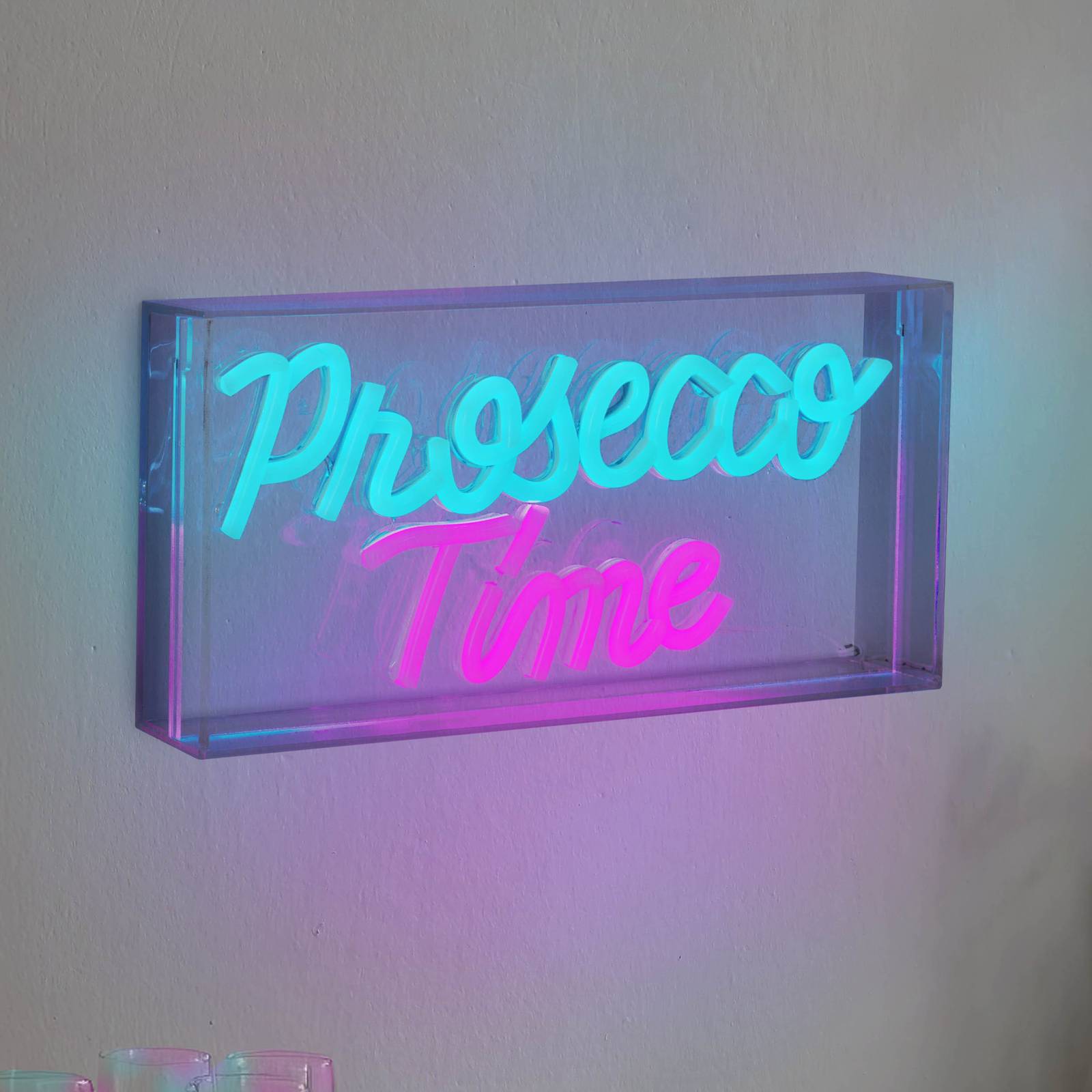 Der Schriftzug "Prosecco Time" erstrahlt in intensiven Farben und zieht sofort alle Blicke...