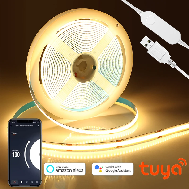 USB Tuya LED-Leuchten Smart Life WiFi-Steuerung Flexible selbstklebende COB-LED-Streifenlampe 5V-Bel...