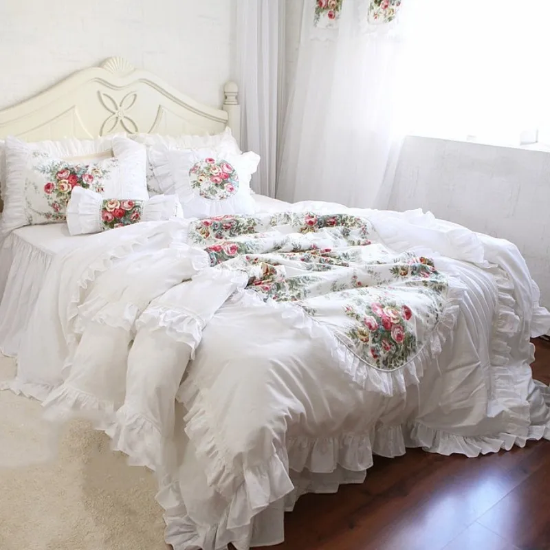 Bettwäsche Set Luxus Große Spitze Rüschen Bettbezug-set Hause Bett Set Bettwäsc...