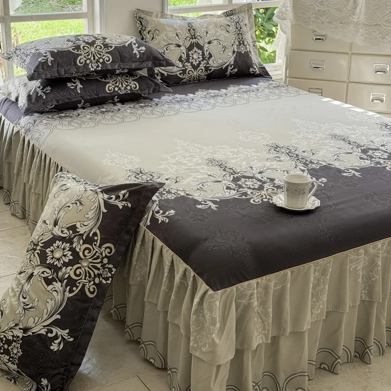 1PC Bettrock mit Blumenmuster, für alle Jahreszeiten, universelles, rutschfestes Bettwäsch...