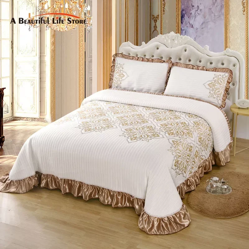 Luxuriöser Bettrock aus weicher gestrickter Baumwolle mit Rüschen, Tagesdecke, Doppelbettb...