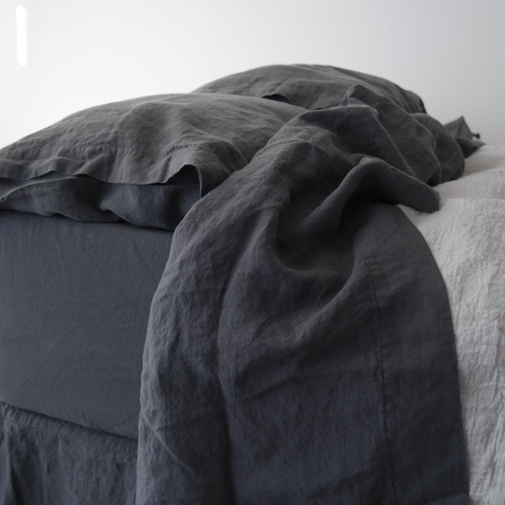 LINEN SHEETS SET of 4 pieces. France linen top sheet, fitted sheet ...