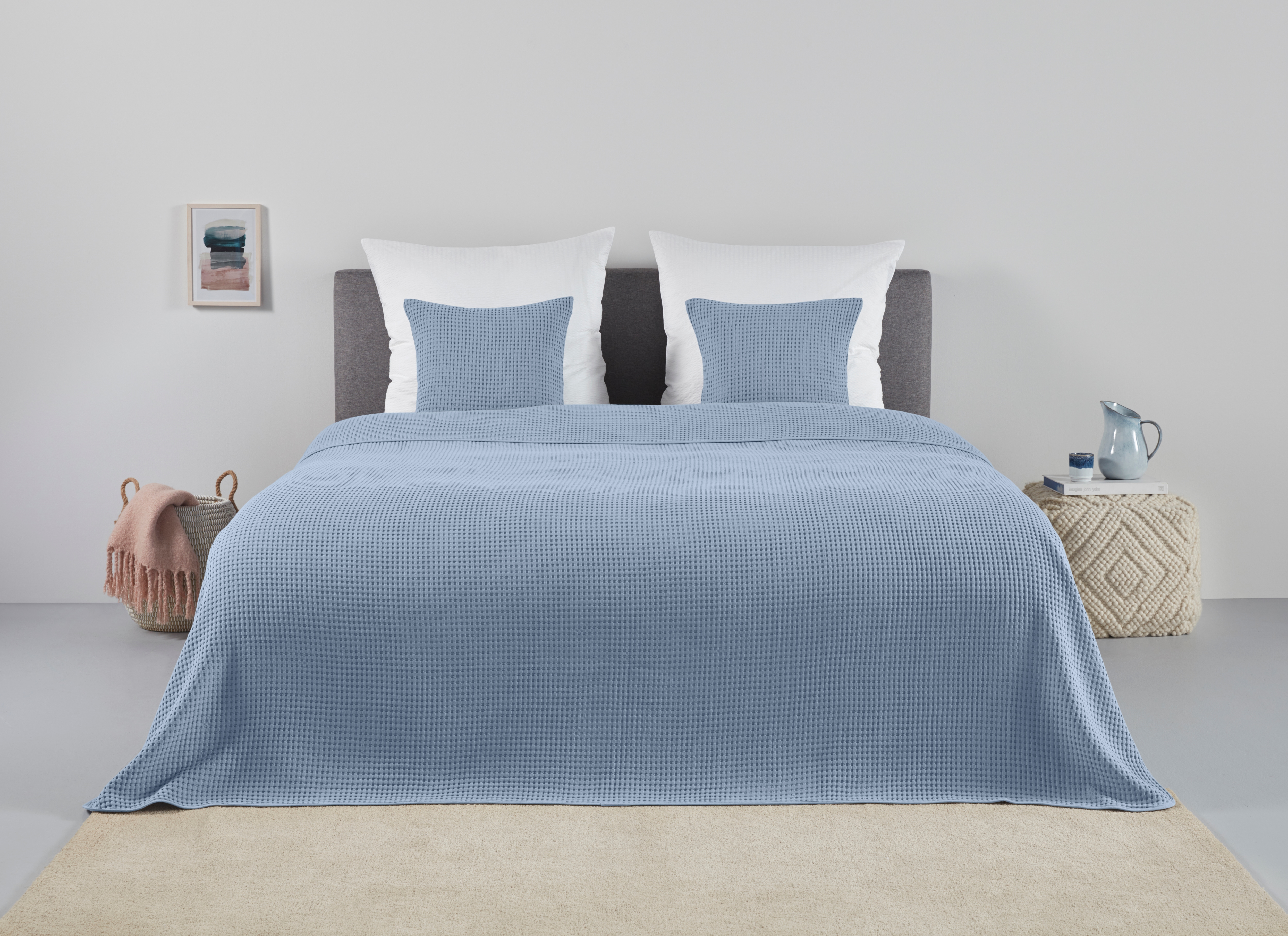 Die Waffelpiqué Wohndecke aus 100% Baumwolle ist ihr optimaler Begleiter in vielen Lebenslage...