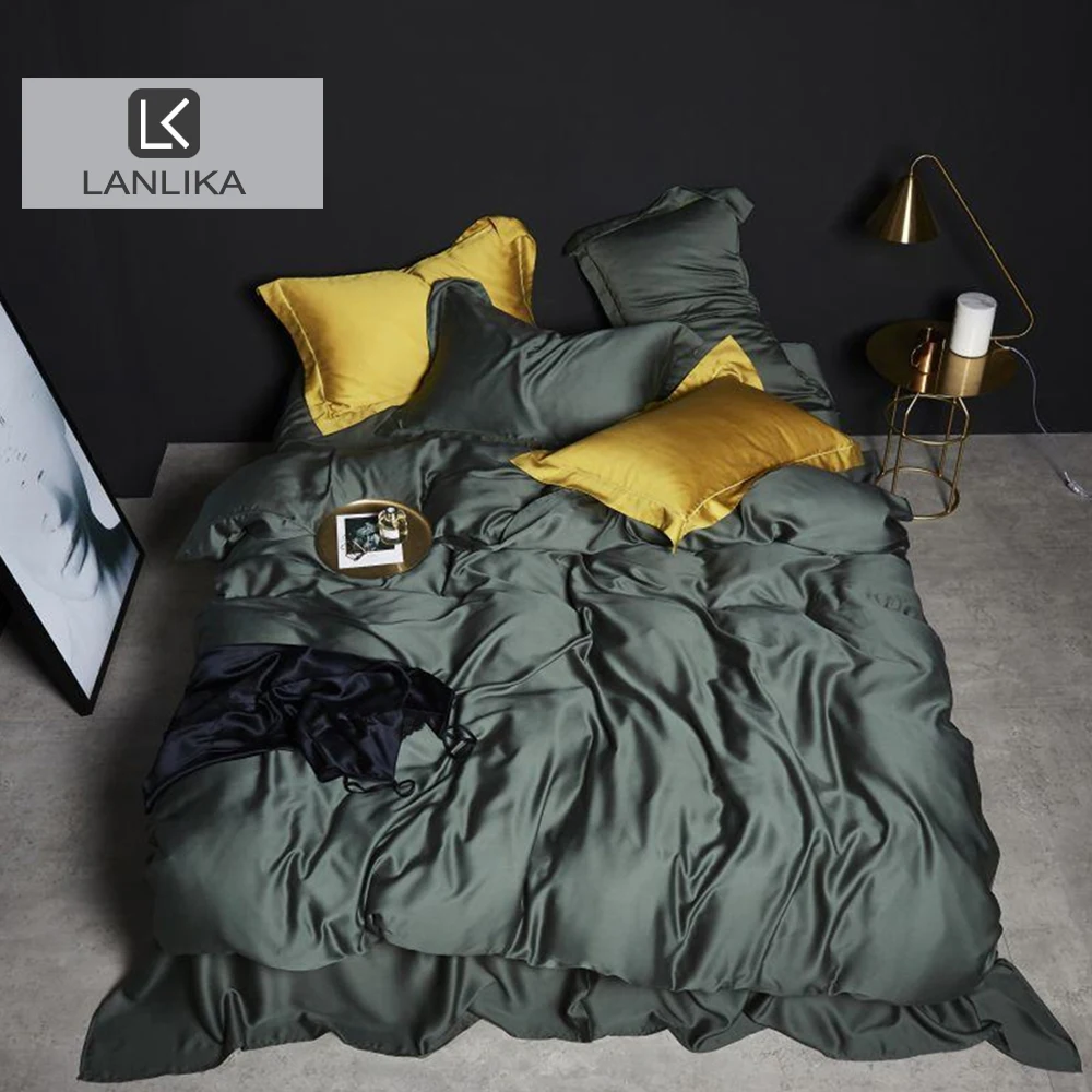 Olive Green Bedding Set Summer Silky Lyocell Fiber Duvet cover Bamb...