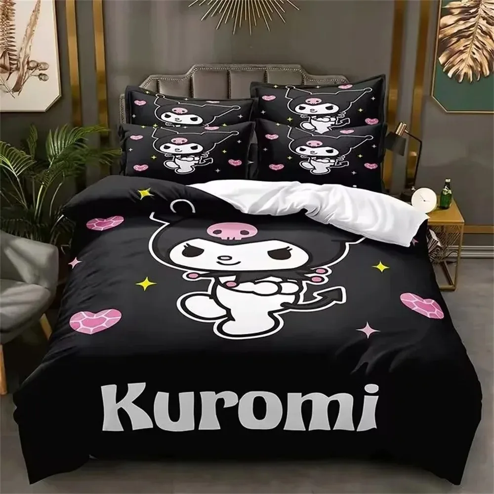 Cute Kuromi Cartoon Bedding Sets Exquisite Bed Supplies Set Duvet C...
