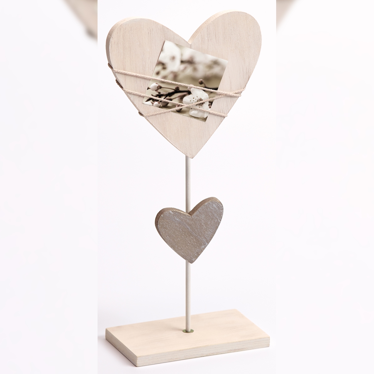 Portraitrahmen Bella Grobes Holzprofil in Herzform mit Standfuss. Der Rahmen ist für 1 Fotos ge...