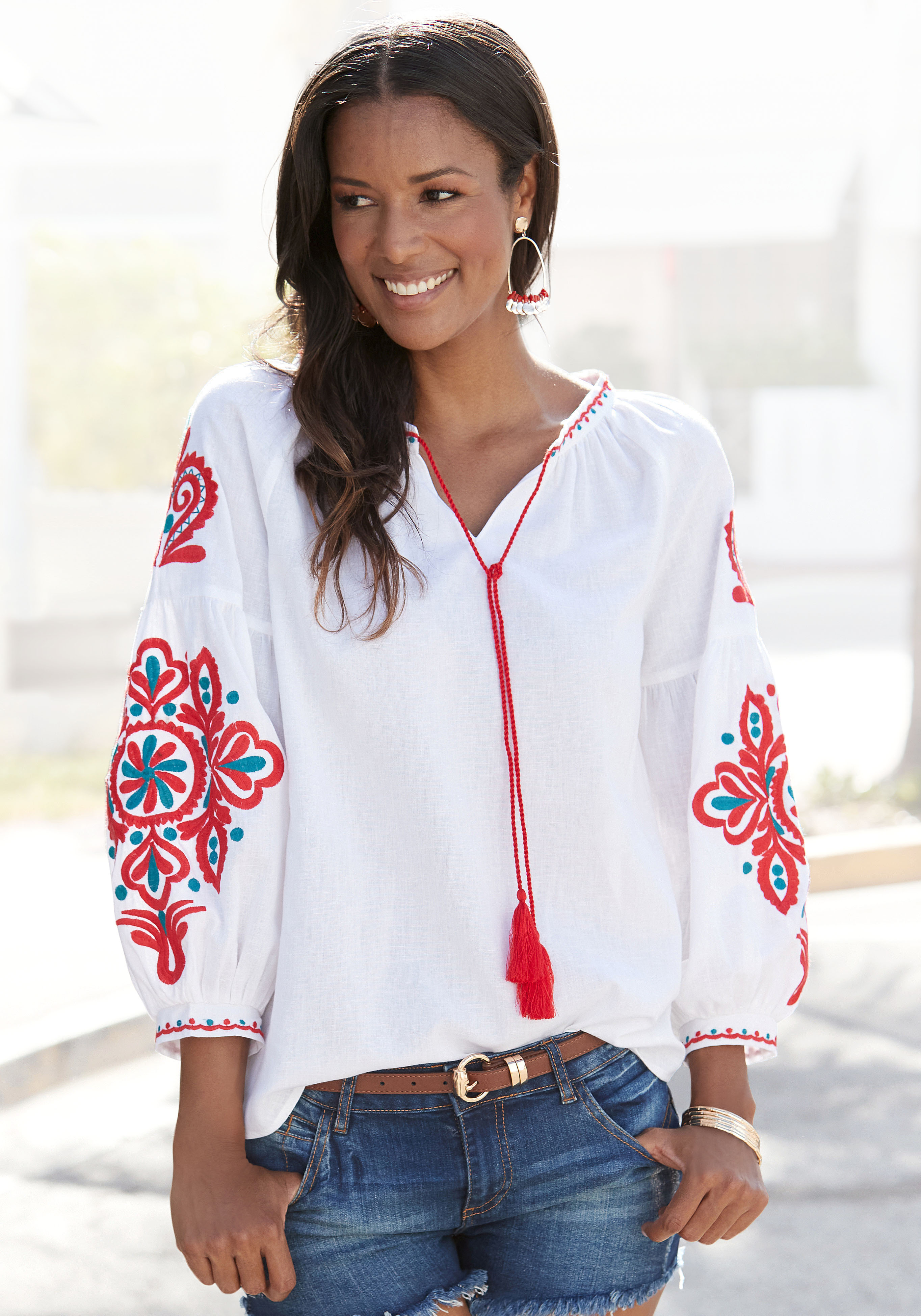 Tunika von Lascana im Bohemien Chic. Zierbänder mit Quasten am Ausschnitt. Lockere, weite Ä...