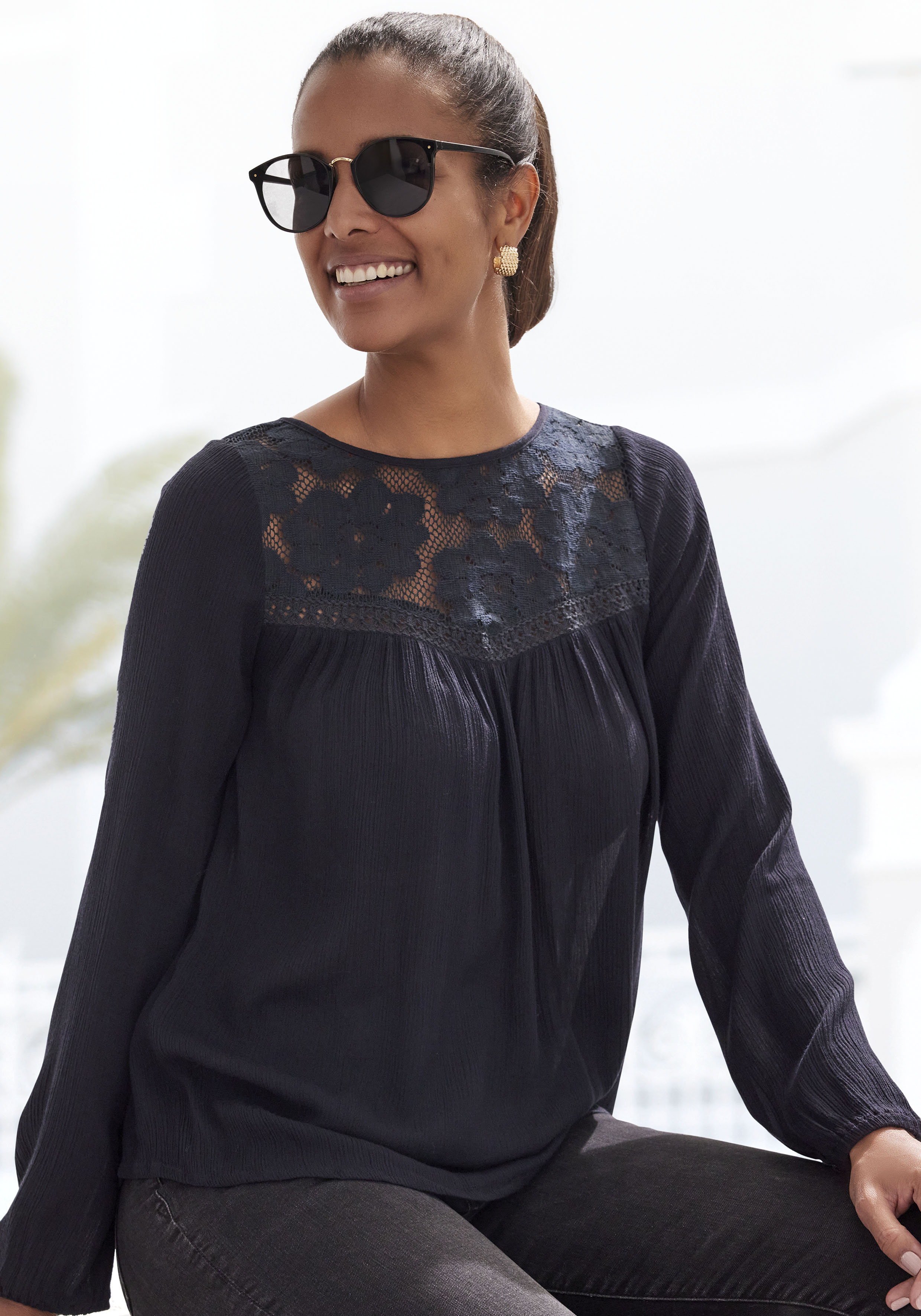Spitzenbluse BUFFALO, Damen, Gr. 40, schwarz, Crêpe, Obermate...