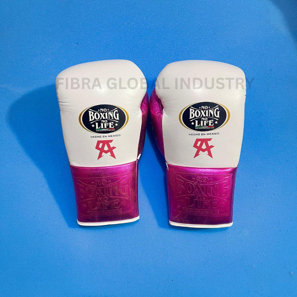 Mexikanische Leder Boxhandschuhe, Weiß & Rosa, Handgelenk...
