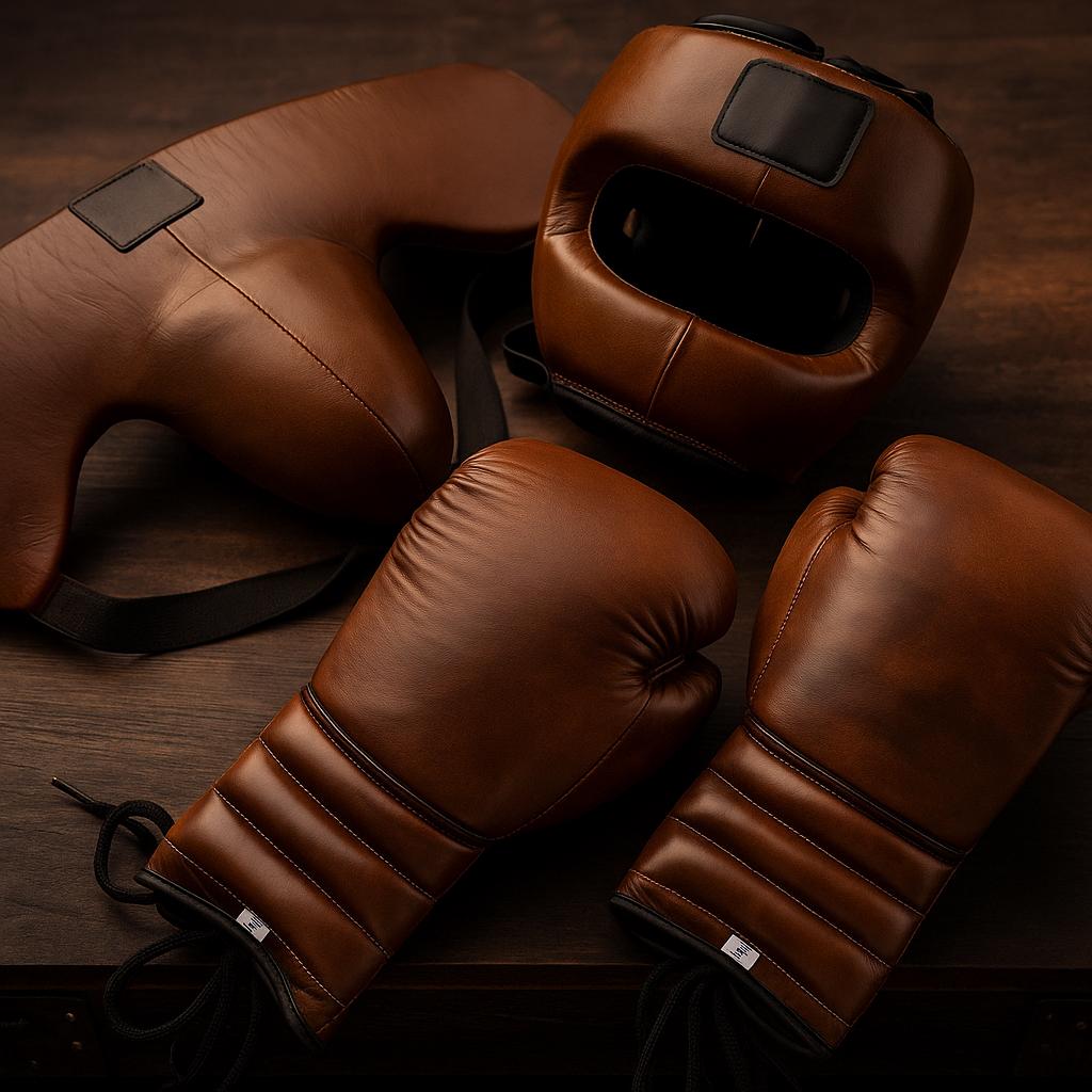 Echtleder Trainings-Set - Boxhandschuhe, Kopfband & Leistenschu...