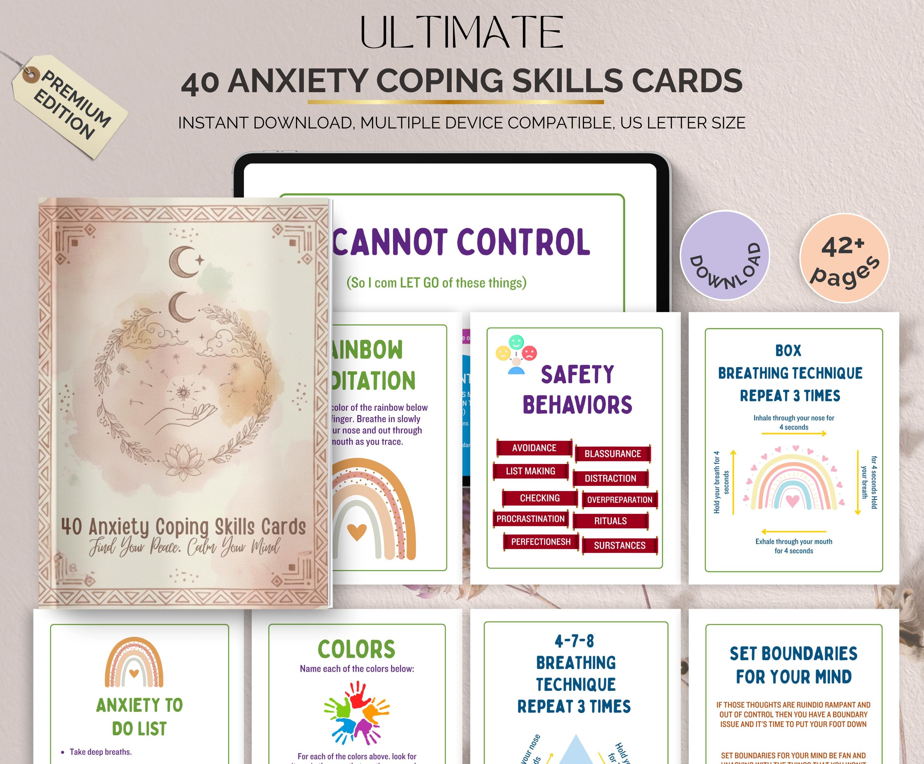 Anxiety Coping Skills Deck, 40 Cards Set, Stress Management, Mindfu...