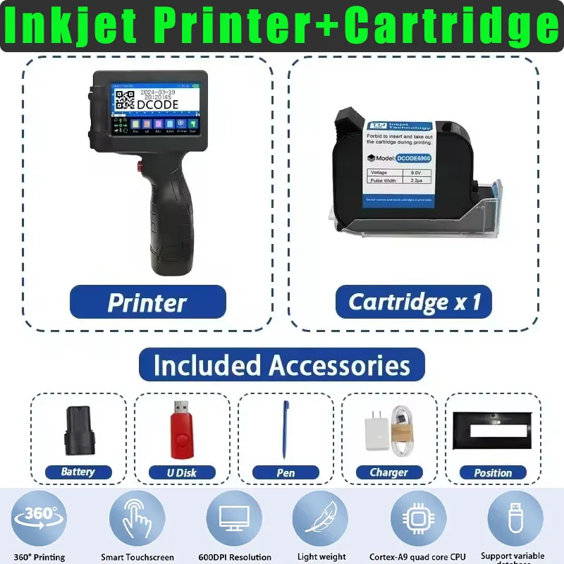 Tragbare Drucker 1755 plus 28 Sprachen Handheld-Tintenstrahldrucker Text QR Barcode Batch Nummer Log...