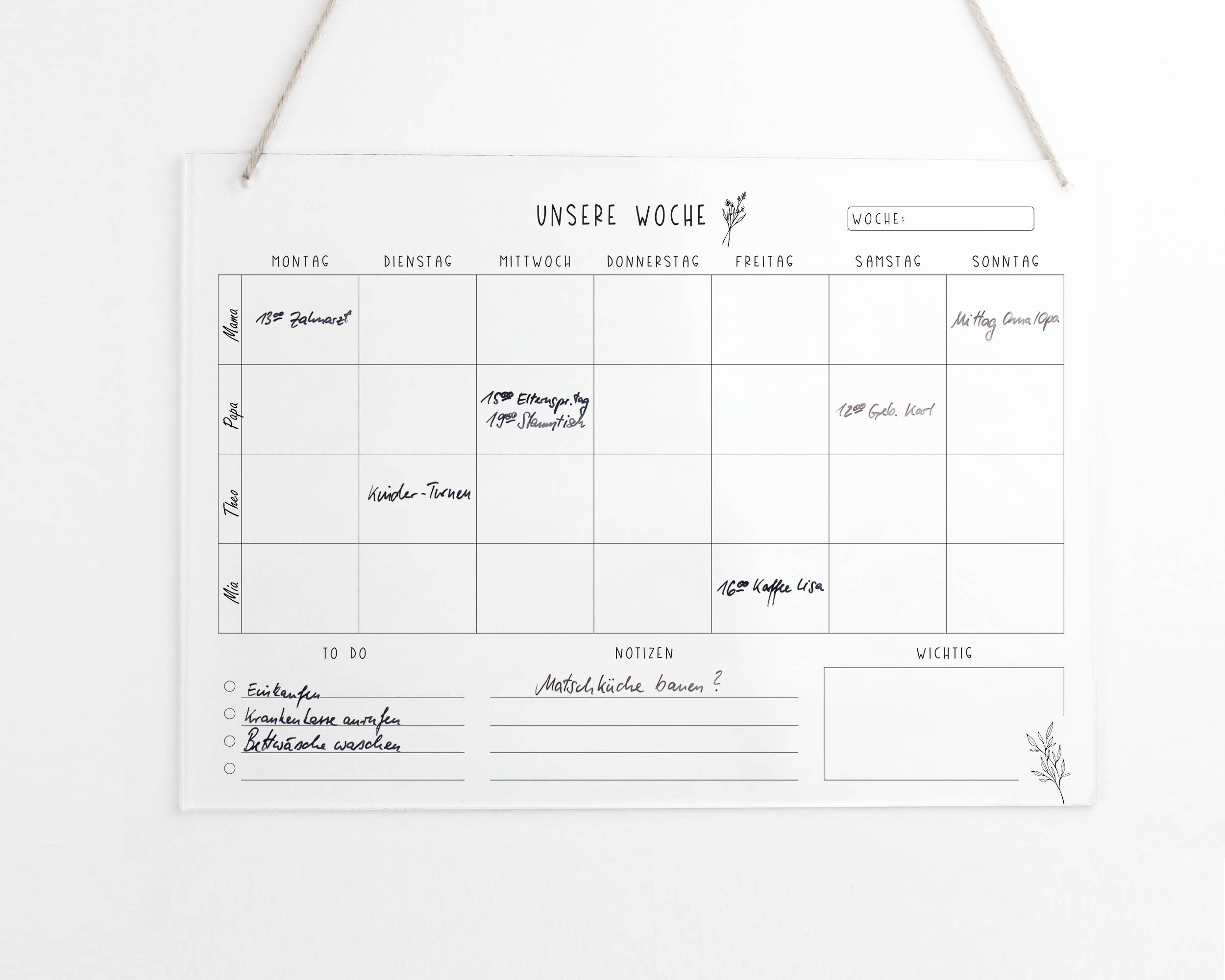 Familienplaner A3 Acryl | Acrylplaner | Wochenplaner für die F...