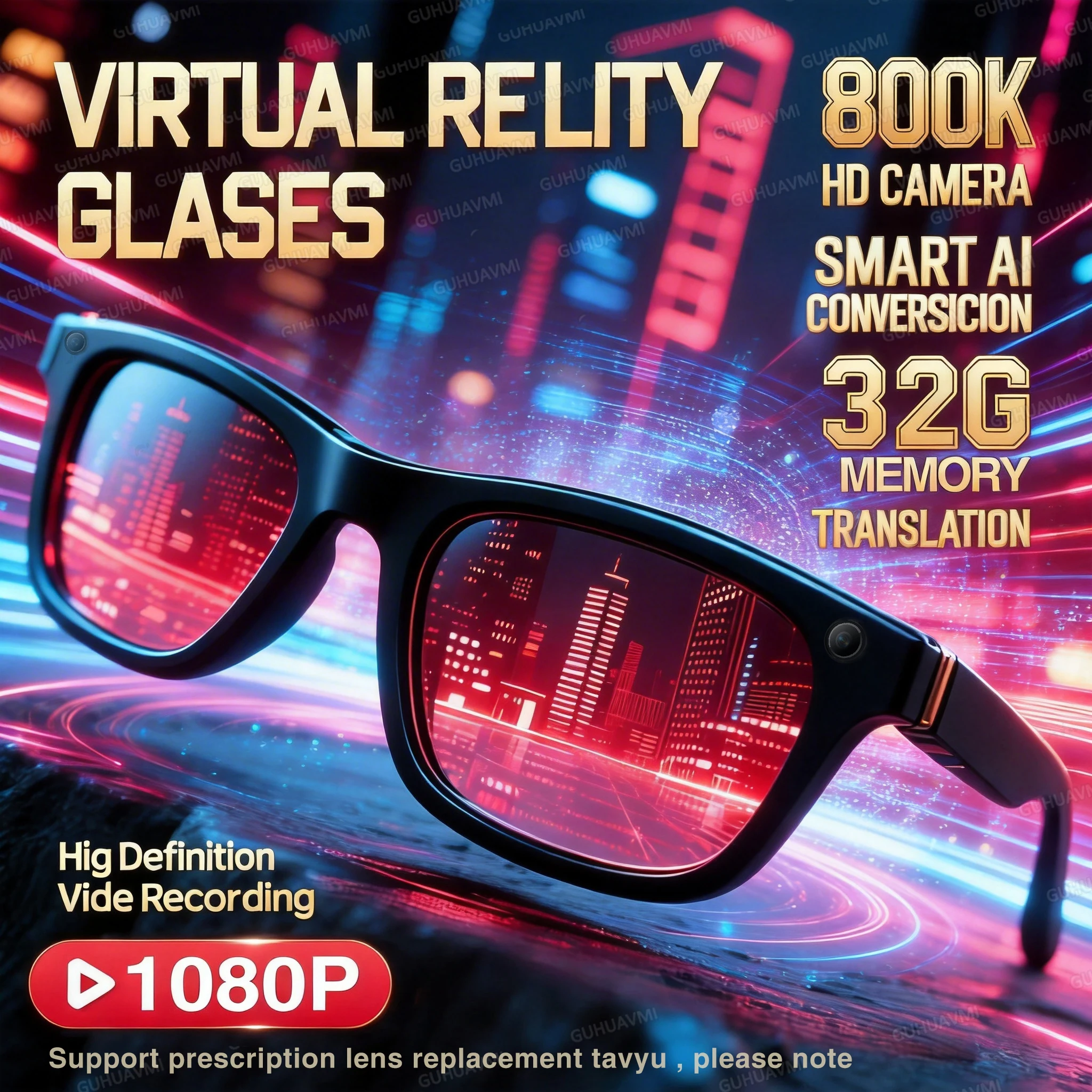 2026 Neue Smarte KI-Brille 1080P HD Videoaufnahme Kamera ChatGPT Bl...