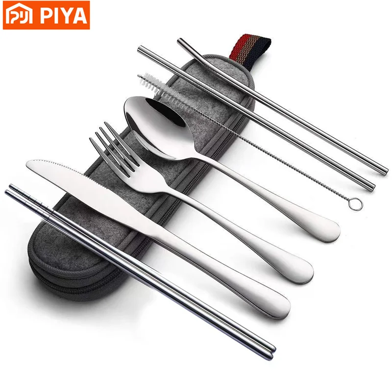 Wiederverwendbares Reise-Utensilien-Set aus Edelstahl, Camping-L&ou...