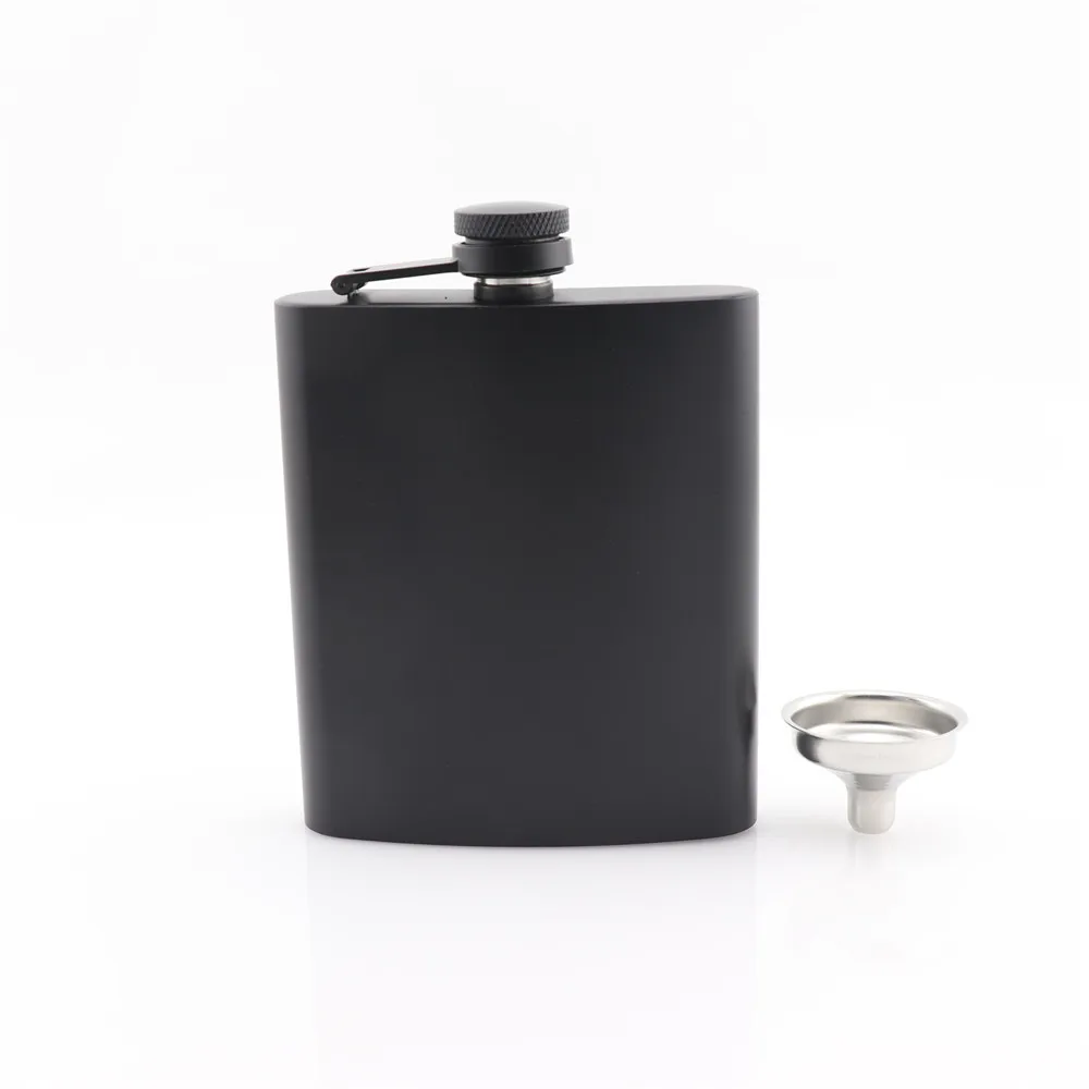 Flachmann aus 6, 7, 8, 9, 10, 12 Unzen, mattschwarz, Edelstahl, Schnapsflasche mit Trichter für...