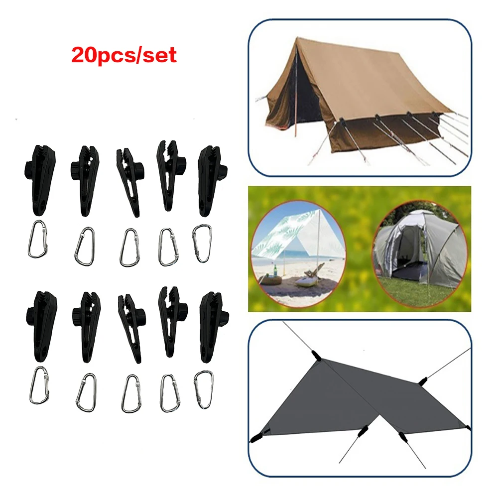 20 Teile/satz Outdoor Kunststoff Winddicht Clips + Metall Karabiner Set Zelt Clips Outdoor Markise C...