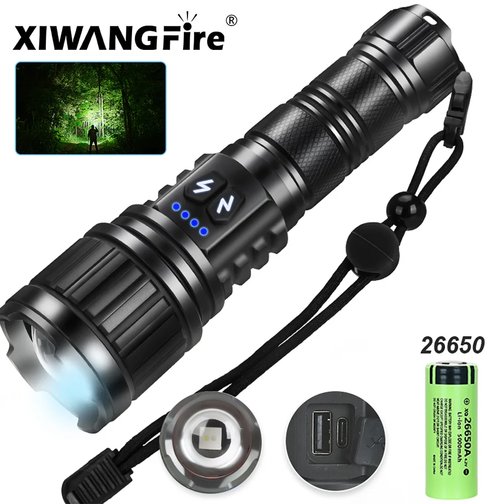 Leistungsstarke LED-Taschenlampe Typ C, wiederaufladbare Taschenlampe, Zoom, wasserdichte Taschenlam...