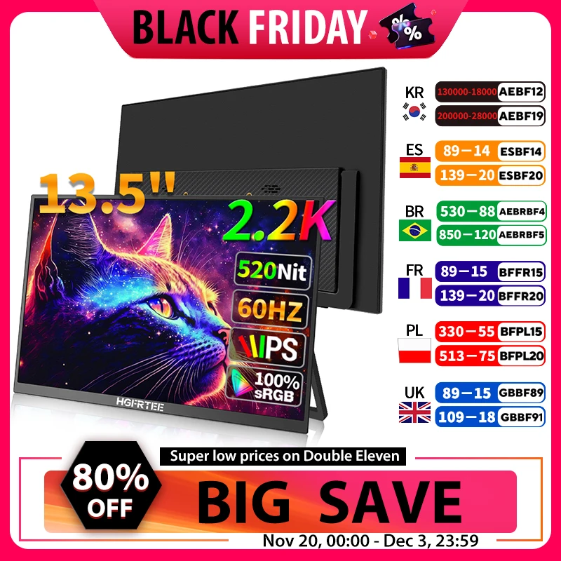 HGFRTEE 520cd/m2 13,5 Zoll tragbarer Monitor 2,2K 100 % sRGB mit HD...