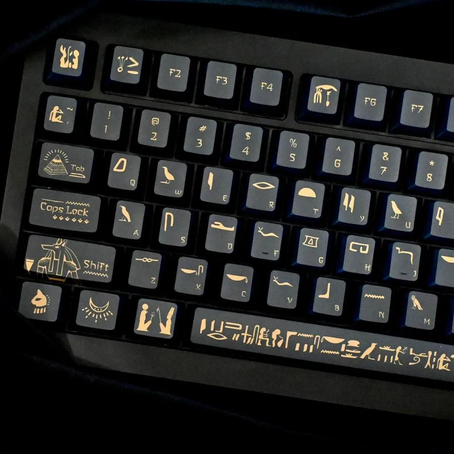 142 Tasten Pharao Keycap pbt Material Kirsch profil Schwarz gold Farbe Farbstoff Sublimation Ansi La...