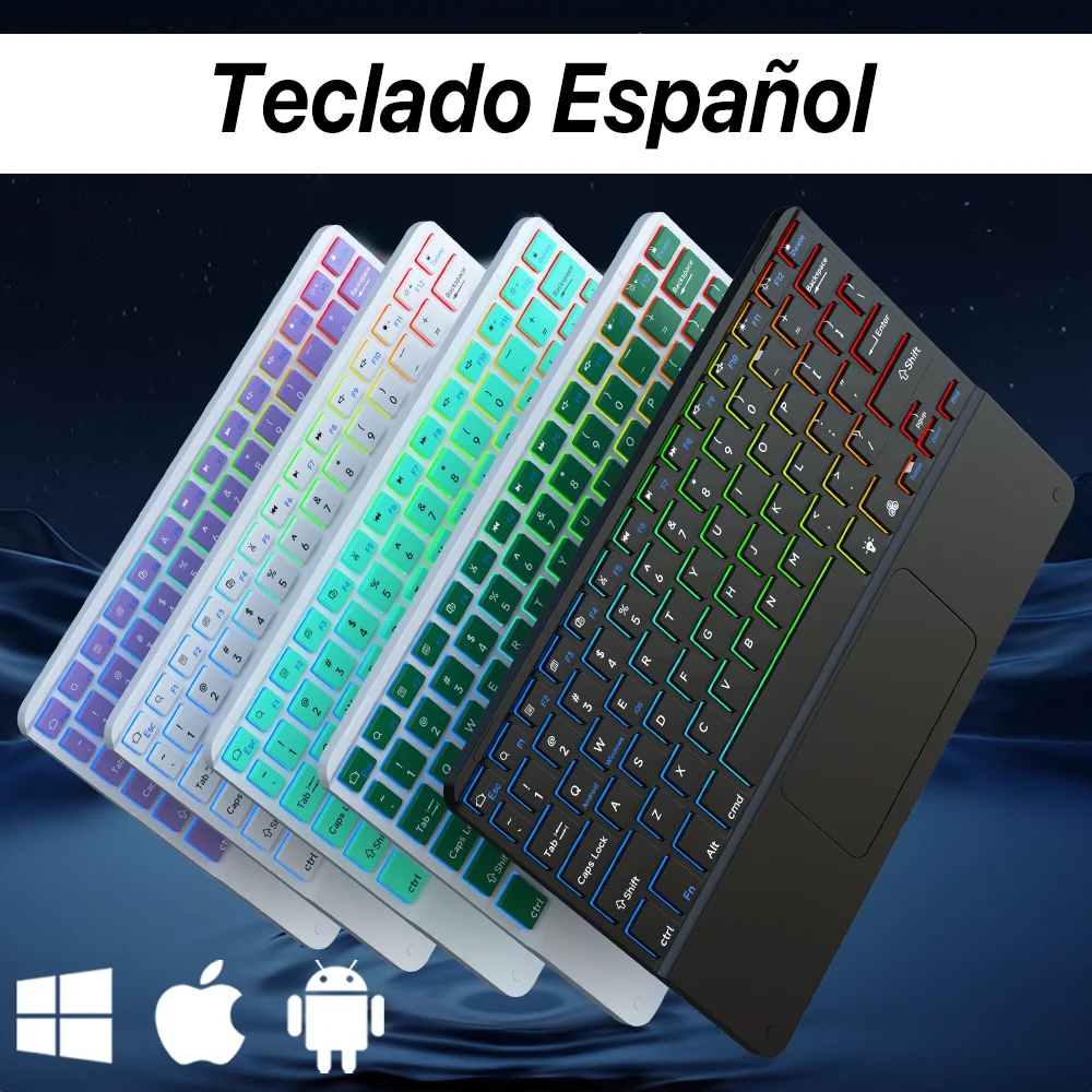 Bluetooth-Tastatur mit Hintergrundbeleuchtung und Touchpad für iOS Android Windows-System, mehr...