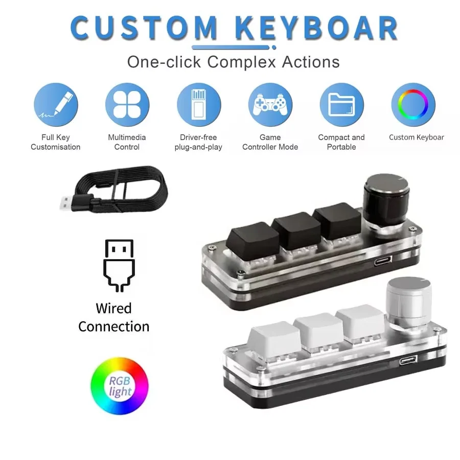 Mini-3-Tastatur, 1 Knopf, kabelgebunden, individuell programmierbare Tastatur mit RGB, Weiß, S...