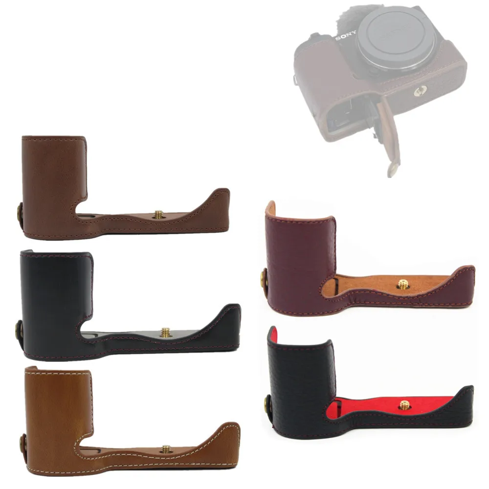 Pu/echtes leder kamera tasche halb basis körper fall abdeckung shell protector für sony ZV...