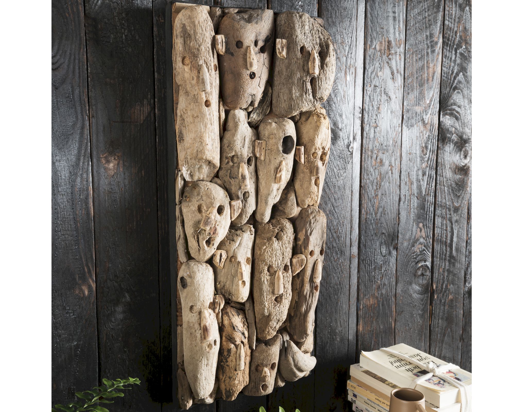 Das Wandbild Face ist handgeschnitzt aus recyceltem Teakholz und zeigt verschiedene Gesichter. Der A...