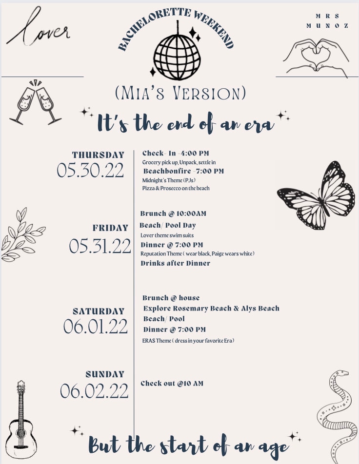 Für alle Swiftie-Bräute - Eras Junggesellinnenabschied Beinhaltet mehrere Reiseplan-Design...