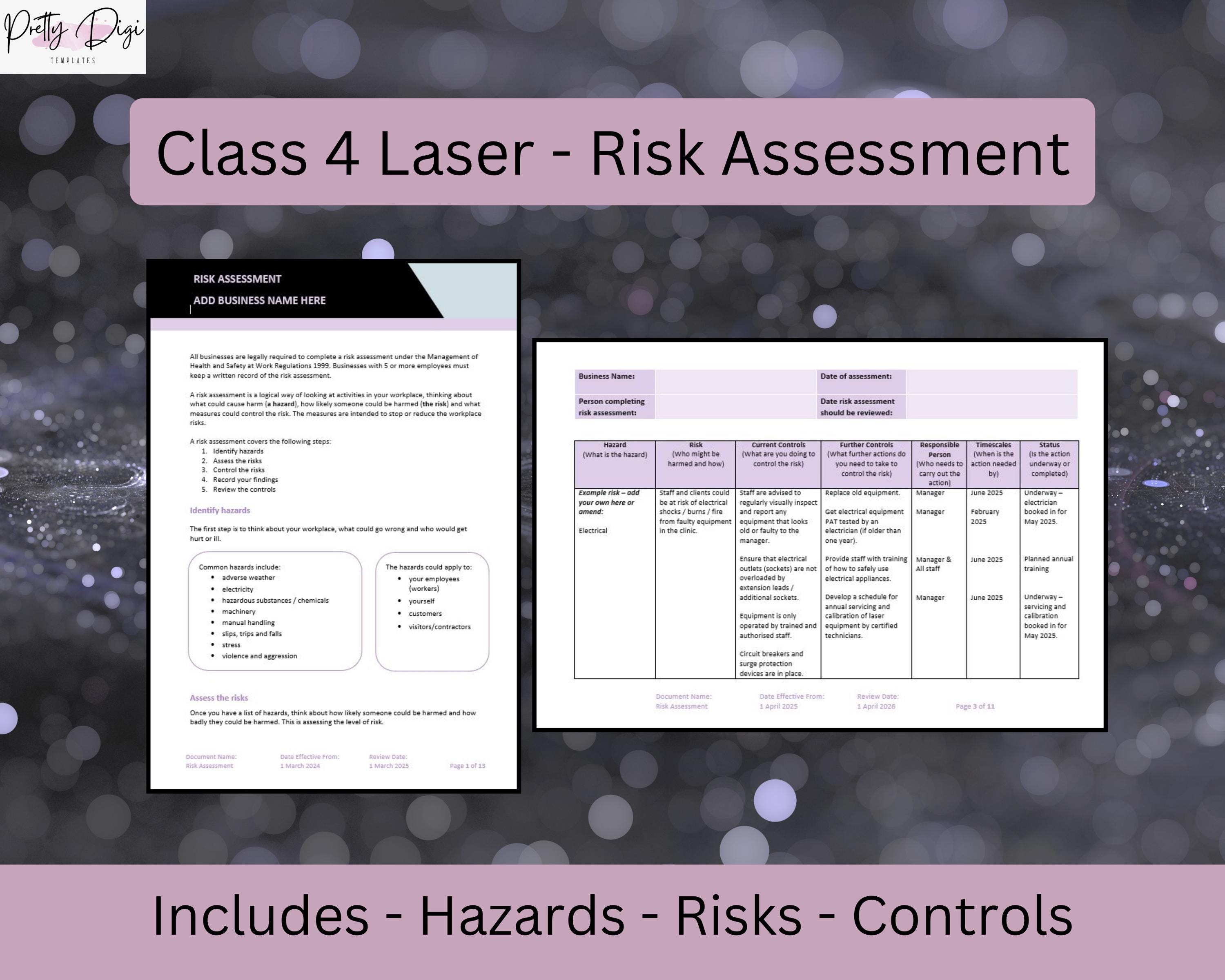 Vorlage für Risikoeinschätzung - Laser Kliniken Enthält Beispiel-Gefahren, Risiken, K...