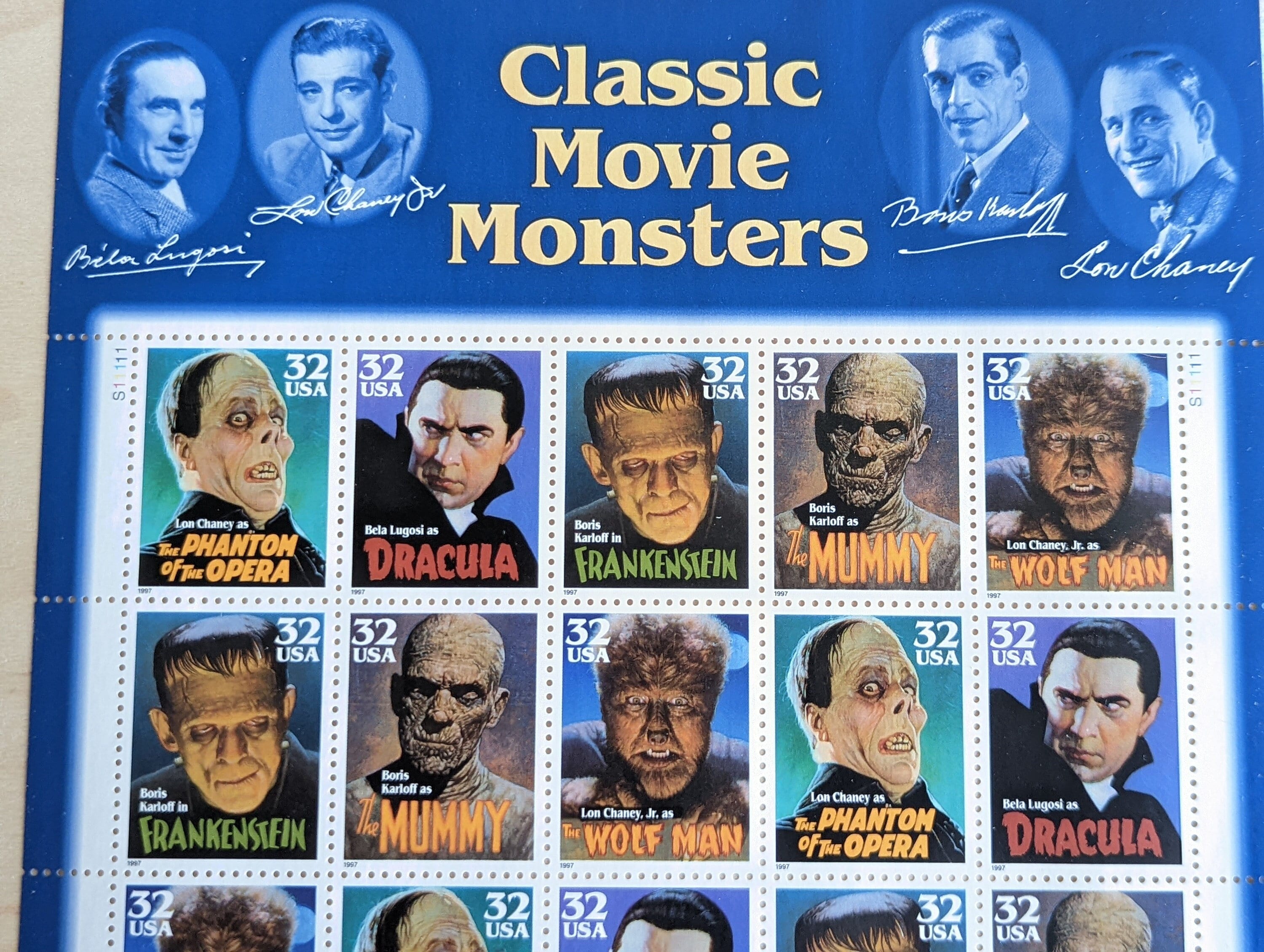 Bogen mit 20 Classic Movie Monsters 32 Cent Briefmarken 1996 US Bri...