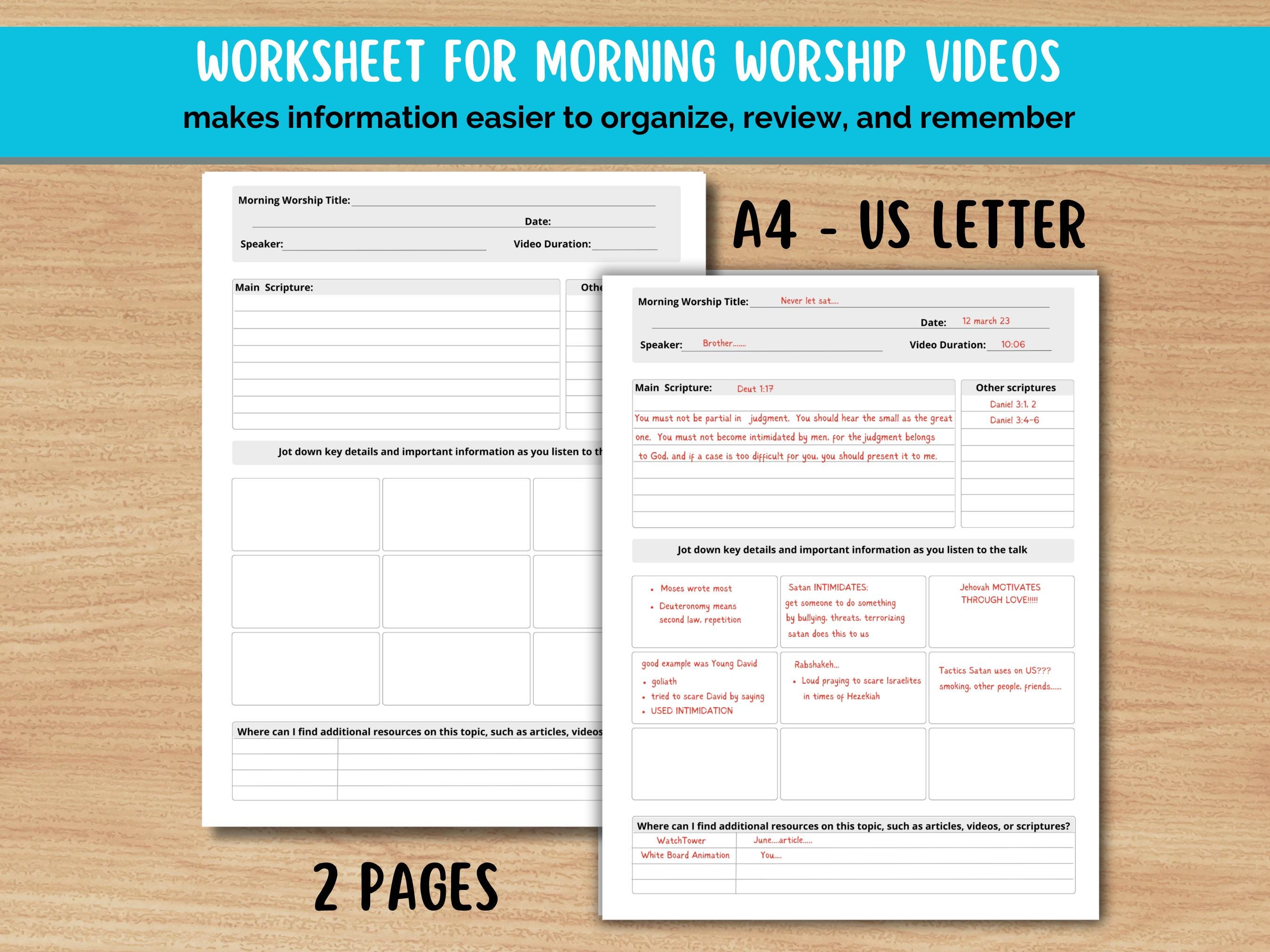 JW Bibelarbeitsblätter für den morgendlichen Anbetung, JW...