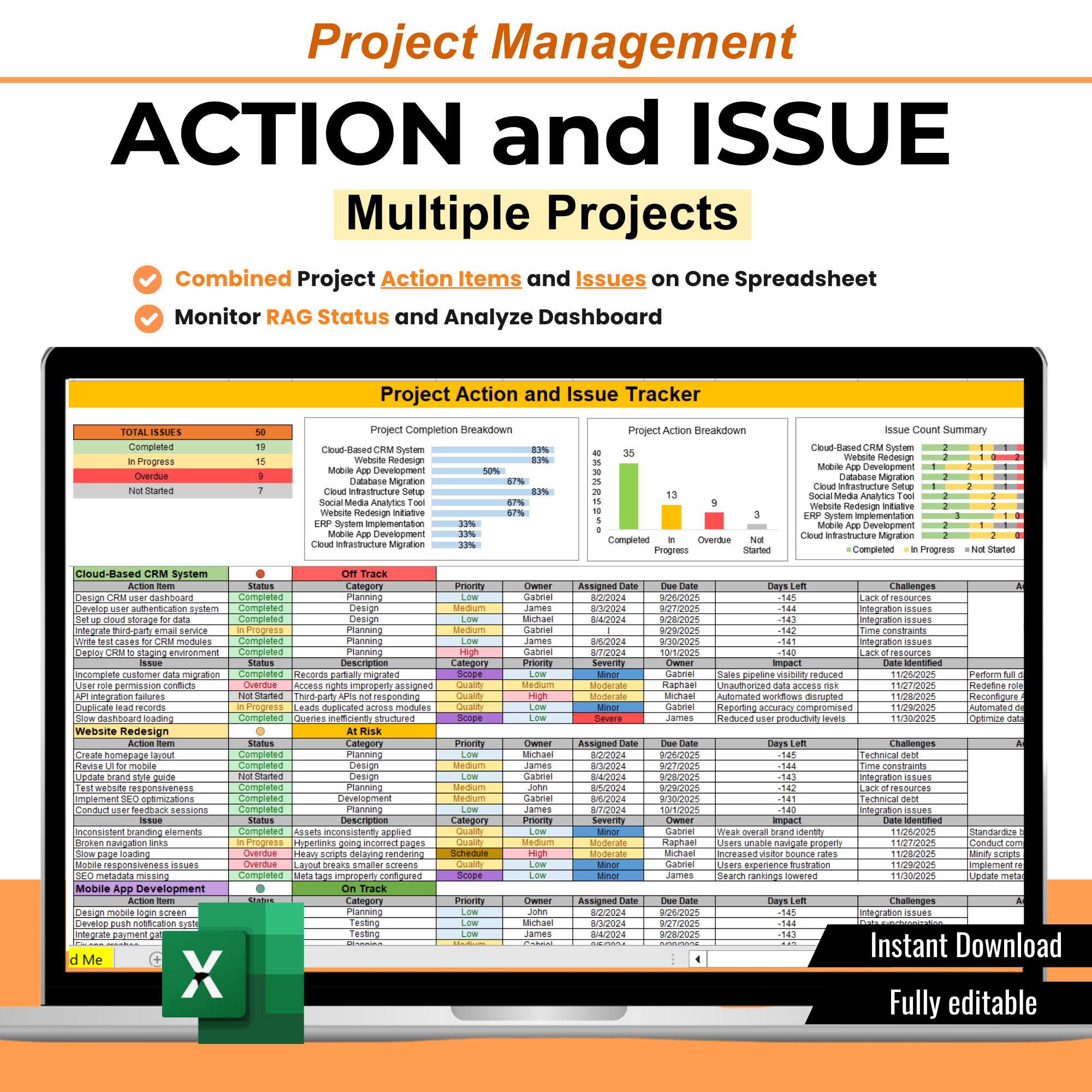 Multi Projekt Action Tracker | Projektmanagement Excel | Aktionsart...